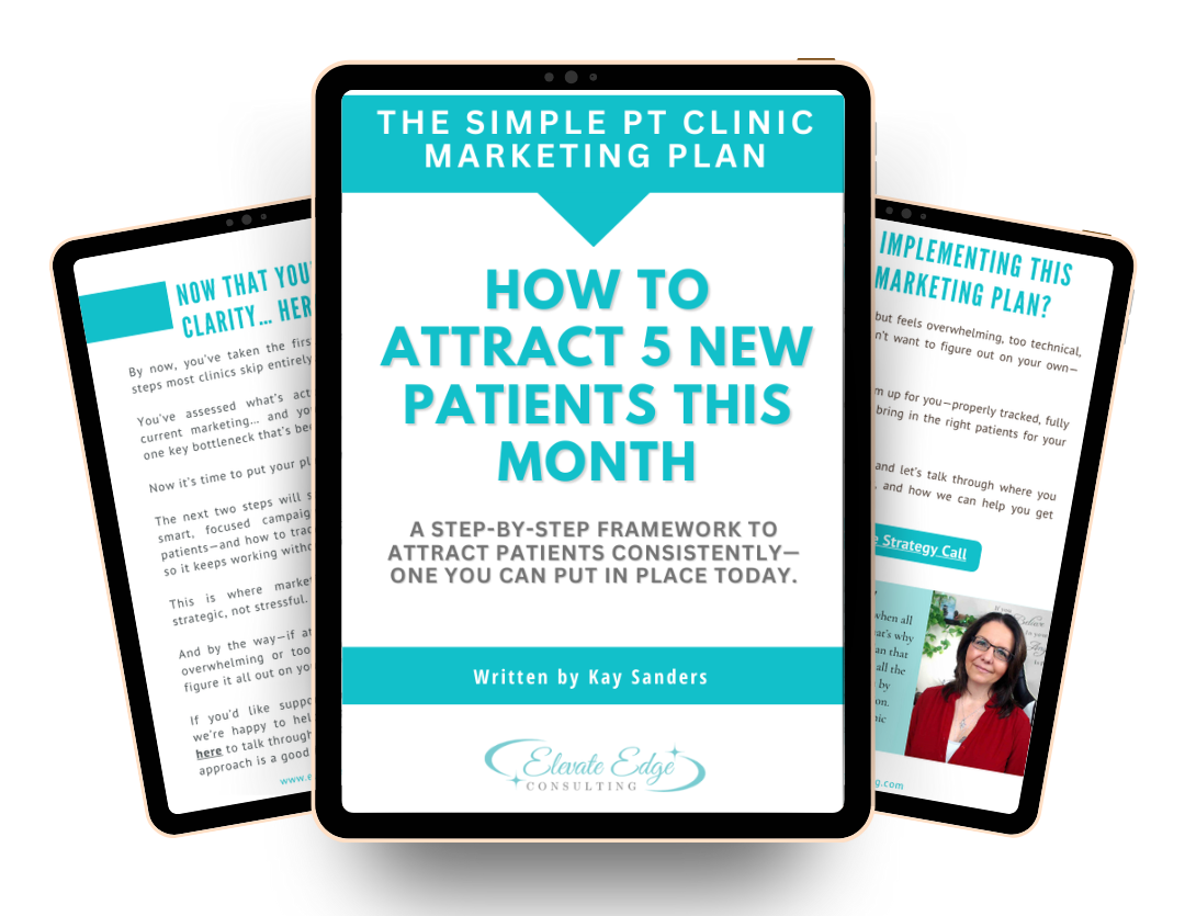 At Elevate Edge Consulting, we specialize in working exclusively with physical therapists and private practice clinic owners, helping you attract more of the right patients, increase booked evaluations, and grow sustainably — all without drowning in complex marketing tactics or wasting time on strategies that don’t work.